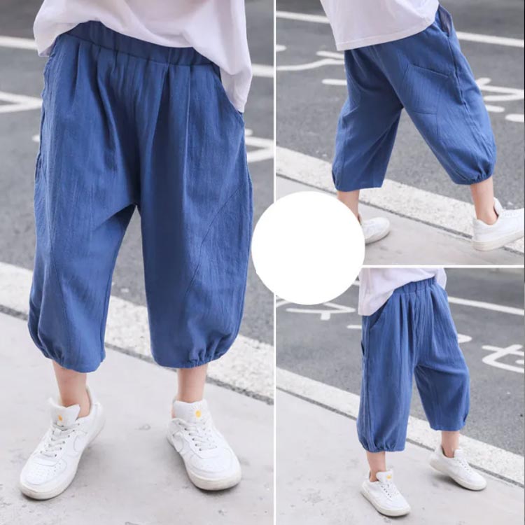 春夏に最適なキッズ用7分丈綿麻パンツ。