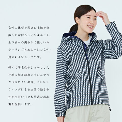 商品情報ITEM INFORMATION 商品説明 レディースのパターンを採用することでスタイルアップもかなうおしゃれなレインスーツです。