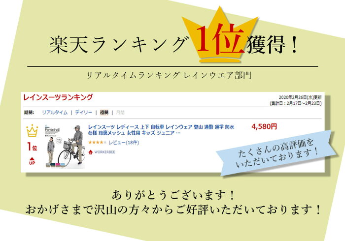 レインスーツ レディース 上下 自転車 レインウェア 登山 通勤 通学 防水仕様 総裏メッシュ 女性用 キッズ ジュニア レインコート 雨具 合羽 7480 レインスーツフェミニン2