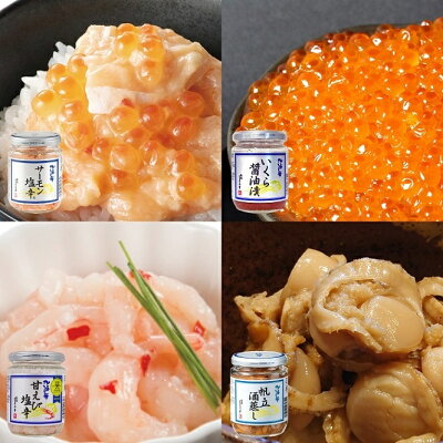 [ギフト]塩辛づくし4本セット(サーモン塩辛・かんずり入りサーモン塩辛・甘えび塩辛・いか塩辛 瓶入り4本)新潟 三幸 北海の華 C-27 ギフト お中元 プレゼント 瓶詰めギフト おつまみ お取り寄せ