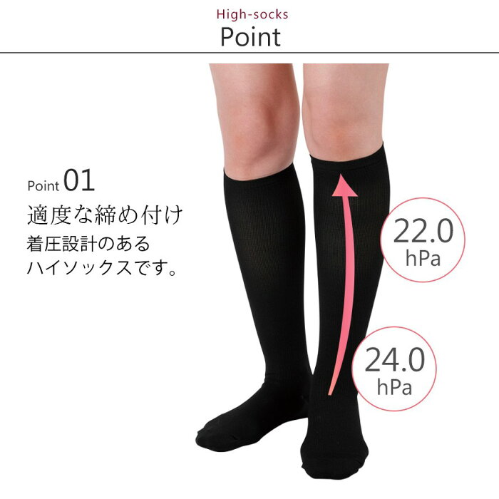 適度な締め付けが気持ちいい、着圧タイプのハイソックスです。