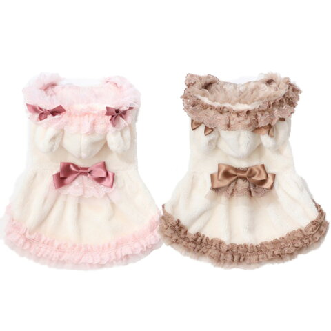 犬服 フリリーくま耳ボアワンピース cannana フリル チュール&レース ワンピ ドッグウェア SS S S+M M L LL