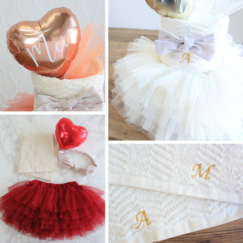 【月間優良店舗】出産祝い おむつケーキ ヘアバンド チュチュ タオル イニシャル刺繍 プリンセス 女の子 フリル スカート ベビー カメラ ヘッドアクセ 名前 おもちゃ 風船 バルーン 名入れ お出かけ服 送料無料 フリル ドレスオムツケーキ プレゼント お祝い 1歳 お誕生日