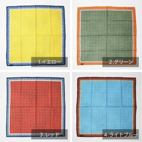 サイズスペック サイズF 縦-65cm/横-60cm 商品コード : 871264-01 原産地:イタリア 素材:コットン100% フランコバッシ / FRANCO BASSI / スカーフ / ネッカチーフ / ドット柄 コットン【1.イエロー/2.グリーン/3.レッド/4.ライトブルー】