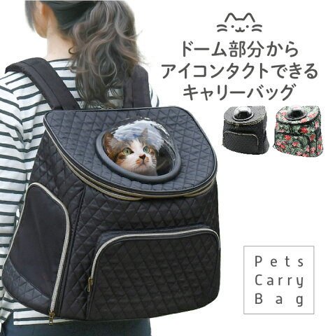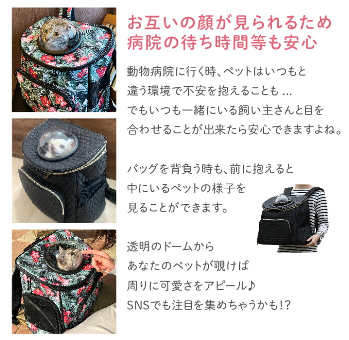 ドーム部分からアイコンタクトができてお出かけ時も安心のペット用キャリーバッグです。